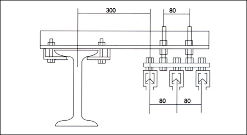 使電源通過電纜引入輸電母線-H型導(dǎo)軌。既可作軌道連接耦合接頭,又可作供電接頭。其護(hù)套保證接頭不裸露。 4、懸吊夾
